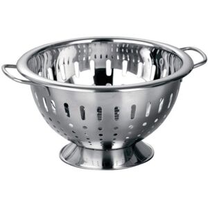 Drain, strain and wash a variety of foods with this contemporary colander. It's made from non-corrosive stainless steel, with a wide base that keeps it stable and raised from kitchen surfaces. Two different hole sizes make this a versatile addition to the kitchen, while its wide handles make it easy to carry to and from the sink.