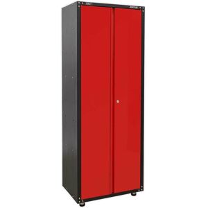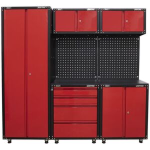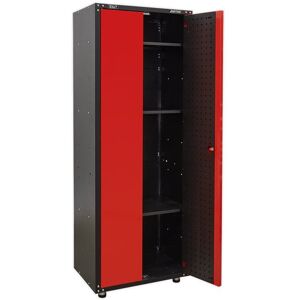 Do you dream of a smart tidy garage with everything stored away the units all matching styles and the same colour like a fitted kitchen but made to withstand the tough jobs that are done in a professional workshop. These modular cabinets can be used as part of a complete garage storage installation or as a stand alone storage unit. They compliment our range of American Pro® modular garage storage solutions so can be used in conjunction with those to fill available space. Made from steel Suitable for use as stand alone storage cupboards or as part of a complete garage fit-out Durable coloured powder coat finish red doors dark grey carcass Worktops (where featured) suitable for assembly jobs or light engineering tasks Lockable with 2 keys included Cabinet doors feature steel pegboards on reverse for tool storage Cabinets with drawers fitted with ball bearing slides Floor standing cabinets have adjustable feet for levelling Supplied flat-packed for simple self assembly Compatible with the American Pro® modular garage storage system
