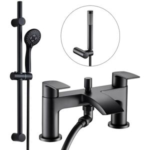 This black finished bath shower mixer features a closed waterfall spout design, which looks great in modern bathroom designs. It's quarter turn levers are simple to use, so you can achieve that perfect water temperature Comes with 2 shower head options in the box A single function square shower handset, wall mounted handset holder and 1.5m hose. Or an adjustable riser rail, with round handset and 1.5m hose. Suitable for all plumbing systems, and operates between min. 0.2 bar (Handset) 0.5 bar (Spout), Max. 6.0 bar pressures. Hot and cold water pressure preferably balanced. 10 year guarantee against manufacturing faults Features Modern design Showerhead and 150cm hose Kit includes fixtures and fittings - Quality Brass Flanged Backnuts for added durability Ceramic disc cartridge Quarter turn mechanism Manufactured from solid brass with a matt black finish Weight 3.31kg Minimum pressure - 0.5 bar (flow rate of 6.2 litres per minute) Suitable for all plumbing systems Bath Waste is