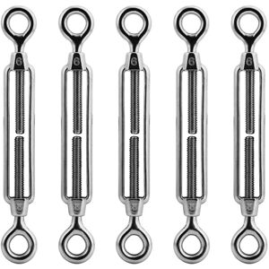 Type: The hole and hook turnbuckle is used to tighten a taut rope and regulate the elastic effect. Material: The turnbuckle hooks are made of 304 stainless steel for strength, durability, waterproof, rust and corrosion resistance. Use: Suitable for tightening rope and regulating the elastic effect; perfect for steel wire, antenna, clothesline, chain and other ropes. Use: Perfect for indoor and outdoor use. Easy to use: a simple twist to increase/decrease the tension. Package Content: 10 x M6 Hook Turnbuckle