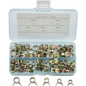 Specification: Material: stainless steel Color: as shown in the picture Dimensions: 6mm, 7mm, 8mm, 9mm, 10mm. Package included: Spring clip 6 mm (15 pieces) Spring clip 7 mm (15 pieces) Spring clip 8 mm (15 pieces) Spring clip 9 mm (15 pieces) pieces) Spring clip 10 mm (15 pieces)