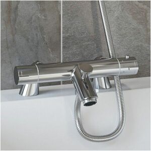 This Aquari bath fillver valve features modern round styling and smooth surfaces, which combine to make a great impact on any contemporary bathroom. It is a fantastic solution to all of your bathing needs. Features and Benefits: Controls on either end of the valve let you easily adjust the temperature and flow of the water Suitable for deck or wall mounting Simply use the diverter to switch the water flow from the shower to the bath filler Thermostatic control means the valve will maintain a steady temperature at all times and reduce the risk of scalding The polished chrome finish will look great in any style of bathroom Please note: this is for the bath filler valve ONLY, a shower hose and head are NOT included Fantastic 5 year guarantee for complete peace of mind Technical Specifications: Dimensions: 271mm (W) x 124mm (H) x 199mm (D)