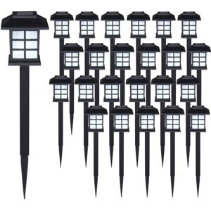 Create an atmospheric garden retreat! The weatherproof solar lights charge during the day through the sun's rays, and at dusk the LED light automatically switches on and off again thanks to the twilight sensor . This eliminates the need for annoying manual switching on and off. The garden lights are also splash-proof (protection class IP44) and are therefore perfect for outdoor use. With the path lights you can create an calming atmosphere in your garden. Versatile: For garden - terrace - balcony and entrance area Durable: Modern LED technology with rechargeable battery and protection class IP44 Practical: Simple wireless installation thanks to the stable ground spike and modern solar technology Product Details: Daylight white LED light Lighting duration up to 8 hours Internal rechargeable battery Powerful solar panel Weatherproof and robust (IP 44) Robust tube and stable ground spike Automatic switch-on at dusk Technical Specifications: Material: Plastic Colour: Black Size (LxWxH):