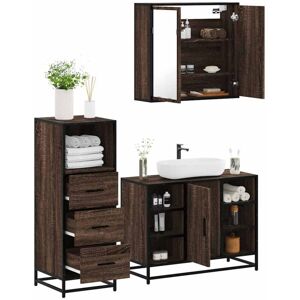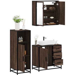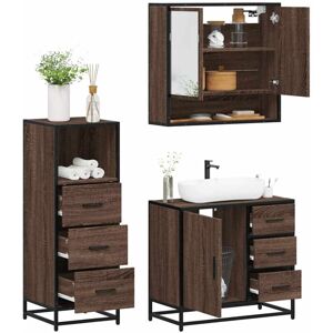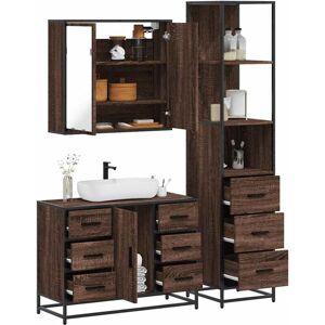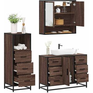 This stylish bathroom furniture set is an excellent addition to your bathroom, giving it a tidy and striking appearance! Stable and durable material: Engineered wood is a durable and stable material with a smooth surface that is resistant to moisture, warping, and splitting, making it a reliable choice for a variety of projects.Stable and long-lasting frame: The metal frame of the cabinet enhances your interior with an industrial style and provides exceptional durability, stability and resistance to corrosion.Ample storage space: This bathroom furniture offers ample storage space to keep your essentials well organised and within reach.Practical cabinet top: The top of the sink cabinet has a hole, so it is ideal for placing the sink.Wall-mounted function: The washroom mirror cabinet can be wall-mounted to save floor space, which makes it especially suitable for rooms with limited space. Warning:To prevent it from tipping over, this product must be used with the provided wall attachment