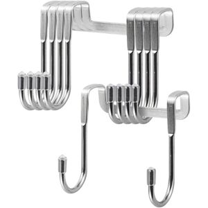 Package Content: Just place the hook on the top of the door, you can hang various items, no more ugly holes in your home. Double hook design makes things in good order and easy to find. You can purchase according to the size you need Excellent material: Thick stainless steel hook, strong corrosion resistance, waterproof, durable, not easy to deform,Perfect for cabinet to hang kitchen tools. Unique design: The flat top is designed to leave enough space for you to close or open the door smoothly. No scratches and no noise: The bottom of each hook is equipped with two silicone protective sleeves, which effectively prevents the hook from slipping and reduces noise. Wide range of applications: The door hook is perfect for cabinet, kitchen, wardrobe, frameless shower glass to hang the towels, bathrobes, squeegees, clothes, kitchen tools, etc., to keep things organized and easy to find.