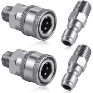 Package Content: You will receive 2 sets of 1/4 inch quick connect meter co-lingers external thread. Suitable for most NPT compatible connectors, enough for your daily use. Premium Material: Our 1/4 quick connect fittings are made of stainless steel, not easy to break and deform, giving you a very useful experience. Compatible Size: The quick connect fittings are compatible with NPT and are not easy to leak and fade, you can connect to most NPT compatible connectors. Pay attention to the connectors connected to 1/4 inch size before connecting. Special Design: Our product has thread and ball lock design, which is convenient for frequent assembly and disassembly under high pressure connection. The ball lock can ensure a firm connection and prevent water leakage when high pressure connections are made. established. Wide Application: Our pressure washer fittings are easy to install, making quick connections to hoses, pumps, ball valves, etc. You can apply it to other places with suitable