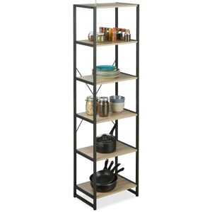 The shelving unit is 180 cm tall and is made of PB and comes with a black metal frame. The industrial design suits kitchen, study, pantry, hallway, workshop as well as a bedroom - the bookcase looks good in any room and can be secured to the wall with a bracket. The 6 shelves offer organization in the home and easy access to the displayed items like flowers, pictures or decorations. Nordic Universal Shelving - Size H x W x D: app. 180 x 50 x 35 cm - 6 large shelves - Weight: app. 15 kg - Material: PB/metal - Colour: brown, black - Capacity: app. 10 kg per tier - Distance between shelves: app. 31 cm Handy Shelf Stand - 6 shelves for plenty storage space - Quick and easy assembly - No drilling - Versatile furniture - Interior industrial look - With bracket Included in Delivery - 1 x Shelf Unit in Pieces - Assembly Instructions and Materials - Decorative items shown in product photos are not included