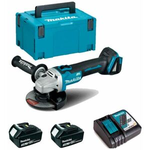 FEATURES AND BENEFITS: Constant speed under load - automatically changes the cutting speed according to load condition for an optimum performance High power motor Anti-restart function - prevents accidental start up for safety Soft start feature Battery fuel gauge LED's - also warns that anti-restart function and current limiter have been activated Rubberised soft grip Electronic current limiter for overload protection Slide switch conveniently located for one hand operation XPT - Extreme Protection Technology - for use in outdoor applications or harsh environments SPECIFICATIONS: Voltage: 18v Bore Diameter: 22.23 mm Max Wheel Thickness: 6 mm Noise sound pressure: 79 dB(A) Noise K factor: 3 dB(A) Max Wheel Diameter: 125 mm No Load Speed: 8,500 rpm Dimensions: 362x130x145mm Net weight: 2.5 kg INCLUDED: Makita DGA504 Lock nut wrench, side handle and abrasive wheel 2x 3.0Ah Batteries BL1830 1x DC18RC Charger 1x Makpac Case