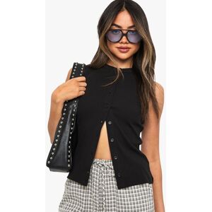 Sleeveless ribbed design with figure-hugging silhouette Front button fastening for versatile styling options Round neckline offering a clean, contemporary finish Soft cotton-rich blend with stretch for all-day comfort Sleek, fitted cut perfect for layering or wearing alone This ribbed button-through top combines comfort with contemporary style for effortless everyday wear. The sleek, fitted silhouette showcases your shape whilst the stretch-enhanced fabric ensures unrestricted movement throughout the day. Style with a denim mini skirt for casual outings or pair with tailored trousers for a smart-casual office look. For cooler days, layer under an oversized coat with chunky loafers for an on-trend contrast of proportions. The versatile design transitions seamlessly from daytime coffee dates to evening drinks - simply swap your trainers for heeled boots and add statement jewellery. A wardrobe essential that works across seasons, this top offers endless styling possibilities whilst maintaining that coveted balance of comfort and style that Boohoo is known for.