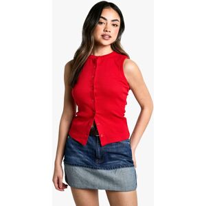 Boohoo Womens Ribbed Button Front Longline Top - Red Cotton - Size 10 Uk