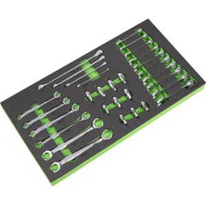 Sealey Siegen Specialised Spanner Set with Tool Tray 30pc Features: Tool Tray with Specialised Spanner Set. Suitable for tool chest Model No's AP3503TB, AP3505TB and AP3508TB. Contents: Stubby Combination Spanners; 10-19mm, TRX-Star* Double Ended Spanners; E6-E24, Flare Nut Spanners; 8-18mm, 3/8"Sq Drive Crow's Foot Spanners; 10-19mm. Technical Details: • Contents: Stubby Combination Spanners; 10, 11, 12, 13, 14, 15, 16, 17, 18, 19mm, TRX-Star* Double Ended Spanners; E6 x E8, E10 x E12, E14 x E18, E20 x E24, Flare Nut Spanners: 8 x 10, 9 x 11, 10 x 12, 13 x 14, 15 x 17, 16 x 18mm, 3/8"Sq Drive Crow's Foot Spanners; 10, 11, 12, 13, 14, 15, 16, 17, 18, 19mm. • Supplied in foam storage tray. • Tray Size (W x D x H): 510 x 270 x 40mm. • Lifetime Guarantee* • Model No. S01274 • Model No. S01274 Additional Information: • SIEGEN BY SEALEY - Part of the Siegen by Sealey range of quality tools at competitive prices. • 30PC SPECIALISED SPANNER SET WITH TOOL TRAY – Contents: Stubby Combination
