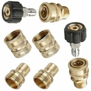 Two sets of quick connectors connect the water outlet of the pump to the pressure washer hose, or connect the pressure washer hose to the gun. The other two quick connect kits convert 3/4" threads to quick release fittings, connecting all standard 3/4" garden hoses to the water inlet of the pressure washer pump. Please note: the M22 14 swivel joint has an inner diameter of 14 mm. If the washer needs 15mm, misuse may cause leaks. Does not fit Sun Joe, Campbell, MI-TM, AR Blue, Stanley, Cleanforce, Simoniz electric pressure washers. Replacement couplers provide secure, quick connections that are easy to connect and disconnect . Maximum load: Pressure up to 5000 psi. Features: 4 types of couplers included: Metric M22-14 female swivel thread + 3/8" socket Quick disconnect 3/8" + M22 male. 19 mm (3/4") female + 12.7 mm (12, Socket 1/2 + 3/4 male Usage: Two sets of quick connectors connect the pump water outlet to the pressure washer hose and connect the pressure washer hose to the gun. The