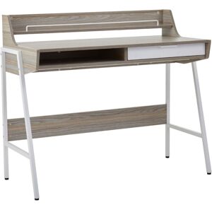The Bradbury desk is idyllic for office or assisting with homeschooling. Supported by a sleek metal frame in white powder coating finish, the rectangular top of this desk features a light oak veneering effect provided by a drawer in an off-white finish.