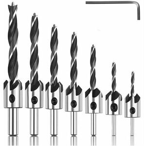 Material: The drill bit is made of tungsten steel, high wear resistance and heat resistance, good toughness. Durable, drilling chamfer, a more practical solution Three-point positioning: Three-point centering is better, not easy to slip and no skew. Accurate and fast drilling Fast chip removal: The 5 flutes twist wood drill bit has large chip flutes for fast sawdust removal to achieve a smooth surface on any type of hardwood, cork or aluminum Removable and adjustable: Adjustable wood drill sleeve depth with a wrench, 7 different sizes for your various needs Different size: The twist wood drill bits are 3mm, 4mm, 5mm, 6mm, 7mm, 8mm, 10mm. Round handle design suitable for bench drill, impact drill, for drilling machines with chuck on hardwood or wooden floor Features: Suitable for wood, plastic, rubber, etc., ideal for production, maintenance or portable drilling work. The drilling length can be adjusted for different length screws by simply loosening and tightening the grub screws. The