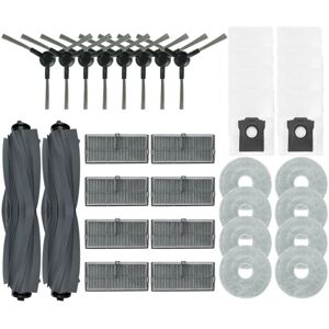 and high quality Made of high-quality materials, more Side brush allows your vacuum cleaner to reach into for a more thorough cleaning Filter filters fine dust to reduce dust, pollen and other allergens from penetrating into the air you breathe. Uniquely designed brushes with rubber treads to adapt to different floor surfaces that remove everything from small dust to large deposits. As part of normal maintenance, it can be easily removed and replaced It is best to replace spare parts every 2 to 3 months to keep the machine running at its best performance Colour:As Shown Material:plastic Package Contents: 1x roller brush 4x side brush 2x hepa filter 4x mop cloth 4x dust bags Only the above package content, other products are not included. Note: Light reflection and different displays may cause the color of the item in the picture a little different from the real thing. The measurement allowed error is +/- 1-3cm.