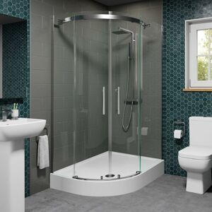Key Features:Stylish, offset quadrant shower enclosureLightweight, polished aluminium frames8mm thick, easy clean safety glass1950mm enclosure heightWatertight magnetic closing mechanismEasy-grip door handlesConcealed fixingsTop & bottom mounted door rollersDoor opening width: 450mm10 year guarantee (please note: seals and moving parts are guaranteed for 12 months)What's Included:1 x Diamond Offset Quadrant Shower Enclosure 1000 x 800mm - Left Hand1 x 1000 x 800mm Raised Shower Tray1 x Hi-Flo Shower Tray Waste Space saving offset quadrant doorFor the perfect small bathroom showering solution you need a quadrant shower enclosure. They feature a much reduced footprint size when compared with a rectangular tray and because the tray is smaller the glass panels are smaller giving you much less to wipe down during cleaning. The doors benefit from a super smooth sliding motion and the frame and handles have a polished surface which is super easy to clean.Lightweight, polished aluminium framesNot only does this enclosure look great with its polished wall profiles and top tracks but its lightweight too due to its precise aluminium engineering. A major benefit of this is that a lightweight product makes for faster and easier installation.8mm thick safety glassThe 8mm glass used is of the highest standard. It conforms to EN12150-1 meaning that it's been rigorously tested and thermally toughened for superior safety and strength.Extra tall 1950mm glass panelsStandard shower enclosure panels tend to be 1750 - 1800mm high, but these are a full 1950mm high giving you extra splash protection and a fantastic high-end look.Top & bottom mounted door rollersThese 8mm shower doors need to operate easily and smoothly which is why they’re fitted with high-quality rollers mounted at the top and bottom of the doors. They use stainless steel & aerospace grade plastic parts to create a set of rollers that are silky smooth, they even have a quick release mechanism on the bottom rollers, for easy cleaning of the panels. Quick and easy installationThis quadrant shower door has been designed so fitting is quick and easy for your bathroom installer. Meaning you'll be enjoying your new shower enclosure before you know it!High-quality CE marked productThese shower enclosures are built to an extremely high standard. They’re CE tested to comply with BS EN 14428 meaning they’ve been put through rigorous testing for use on the UK market.10 year guarantee against manufacturing issuesWe use the highest quality parts and materials for our shower enclosures, which makes us sure of great functionality and performance, which is why we guarantee the enclosure for 10 years against manufacturing defects.(Guarantee excludes seals and moving parts which are covered for 12 months Hydrolux Raised Shower Tray with WasteOur shower trays are built with durability and performance in mind, with each one tested to support up to 4000kg, whether used with or without our own supplied riser leg...