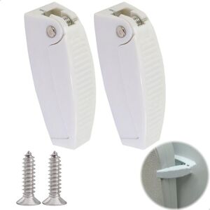Material and Size: The caravan door bracket is made of high-quality white plastic. This plastic product is environmentally friendly and recyclable. Size: 6.3 × 1.8 cm. Complete accessories: 2 pieces + 4 screws. Spring door clamp: An essential accessory for RV or camping equipment. 【Special Appearance】 The delicate appearance of the clamp makes it not only robust but also flexible and stable on the caravan. 【Stable and Durable】 This spring door clamp protects your walls from scratches. The elasticity ensures that doors and windows are tightly closed and do not move, allowing you to enjoy the fresh air in your motorhome. 【Easy Installation】 Screw the door stop assembly to the exterior wall of the caravan or motorhome to keep the wall always open.