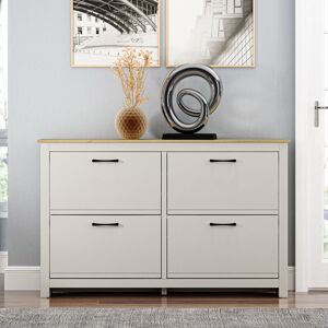 Declutter your entryway with the sleek and functional Limestone 4 Door Flip Down Shoe Storage Cabinet by 17 Stories. Designed for modern living, this compact cabinet offers generous storage in a space-saving vertical format. With flip-down compartments and a clean-lined silhouette, it’s the perfect blend of style and practicality for hallways, bedrooms, or any small space that needs a tidy touch. 17 Stories Finish: White