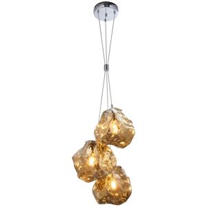 Specification Endon Rock Modern Contemporary 3 Light Cluster Pendant Metallic Bronze Glass Shade Chrome Plated Finish: Bronze Metallic Glass & Chrome Plate Material: Steel & glass Min Height (cm): 101.00 Max Height (cm): 153.00 Diameter (cm): 42.00 Lamp Type: E27 Number of Lights: 3 IP Rating: IP20 Dimmable: Dimmable Bulb Included: No Wattage (max): 10W Weight (kg): 4.88 Description Inspired by volcanic rock formations, this statement pendant in metallic bronze emits an attractive ember glow and features an adjustable detail allowing you to alter the shape of cables. Perfect when paired with LED filament lamps