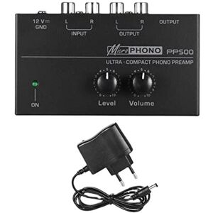 100% new and high quality Ultra compact phono preamplifier with metal housing, portable and . 2xRCA (L and R) inputs 2xRCA (L and R) outputs 1x1/4 inch TRS output, multiple connection options. With level and volume control knobs. To convert the phone signal to a line level signal. Plug Type:EU Plug,it applies to Indonesia, Germany, France, Spain, Italy and so on Voltage: AC100-240V Ultra low au- performance, offers excellent sound quality. Item Type: Phono Preamplifier Connector: 1/4 inch TRS connector Power supply: DC 12V Input: 110-240V 50/60Hz Output: 12V 500mA Material: Metal Size: 10.3x5.7x3cm/4.05x2.2x1.1in Color: Black Package Contents: 1 x Phono Preamp 1 Adapter Only the above package content, other products are not included. Note: Light reflection and different displays may cause the color of the item in the picture a little different from the real thing. The measurement allowed error is +/- 1-3cm.