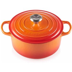 The iconic Le Creuset Signature Volcanic Cast Iron 22cm Round Casserole is perfectly designed for stews, casseroles, roasts, soups and baking. Make mouth-watering and memorable meals that are full of intense flavour in this one-stop pot. Advanced sand interior enamel - durable, easy to clean and specifically engineered to resist staining with a higher resistance to wear and tear. Significantly improves durability and performance, being 35-40% more resistant to thermal shock and 16% more resistant mechanical shock (chipping from utensils). It is also more resistant to acid attack and 24% more resistant to enamel erosion. There is less absorption of food colours and it is more durable against repeated dishwasher use as well as being 45% easier to clean. Large handles are easier to grip and lift when full, even when wearing oven gloves or mitts. Stylish and durable brushed stainless steel finish. Easy, comfortable and natural grip, suitable for all temperatures. Tight fitting lid with built in stabilisers for enhanced moisture lock in and flavour, during cooking. Handcrafted at the Le Creuset foundry in northern France since 1925, Le Creuset casseroles are made from premium quality cast iron ensuring each product is beautifully finished and long lasting. Le Creuset cast iron cookware also works efficiently at low to medium cooking temperatures and retains heat effectively, ensuring food stays warm for longer. Le Creuset cast iron casseroles are suitable for all hob types (including ceramic, halogen, induction, gas and oil or wood) and are also oven and grill safe. Dishwasher safe, although hand washing is recommended. The Le Creuset Volcanic 22cm round cast iron casserole is ideal for 3-4 people and has a capacity of 3.3L. Dimensions: L30cm x W23.3cm x H15.2cm. Weight: 3.93kg. This Le Creuset Signature Cast Iron 22cm Round Casserole is supplied with a manufacturer's lifetime guarantee.