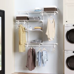 ClosetMaid ShelfTrack Organiser Kit offers a wardrobe solution in a box! Multiple installation configurations are achieved using shelf location adjustability along the mounted track system. Hang rods attach to the SuperSlide shelving using specially formed J shaped brackets for the continuous slide of hangers, giving you maximum flexibility for your wardrobe! Install the Closet Maid system directly to the back wall of your room/enclosure and add the shelving in a position to suit you. Reposition as your needs change or your family grows! All shelving, hardware, and fixings are included in the kit, and installation couldn't be easier! Trim the shelving using a hacksaw or bolt cutters to suit the exact dimensions of your available space and use the end caps provided to neatly finish your shelving. All shelving is made from steel wire with a white vinyl coating. The ventilated design of the wire shelving will help keep dust levels to a minimum and increase air flow, keeping stored items fresh. Ideal for wardrobes/laundry rooms/utility areas. Install your wardrobe system to suit your needs, compatible accessories and shelving are also available separately if you would like to add to your system and customise your storage solution. Closetmaid