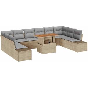 This cool Garden Dining Set with Cushions is all about modern style, just right for lounging in your garden or on the terrace. The fancy woven poly rattan and solid acacia wood create a lovely outdoor vibe, perfect for weathering the elements and being the star of any get-together. With its neutral colours, it blends effortlessly with different garden styles, bringing comfort and elegance whether you're chilling solo or having a party. Poly Rattan Beauty: Enjoy outdoor elegance with this garden dining set’s well-woven poly rattan. It looks great and stands up to wear and tear. Storage with Ease: The clever design features hidden storage in the armrests and corners, cleverly keeping your bits and bobs out of sight. Functional Design: With materials that resist UV rays and removable cushions, this set is built to handle the weather and makes maintenance a breeze. Spacious Setup: Perfect for summer hangouts, the roomy seating and garden table make hosting easy, plus the cushions add