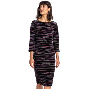 Glitter Stripe Print Velvet Dress from Roman. Be sure to stand out in style with this fitted party piece with an on-trend sparkle stripe print and designed with flattering 3/4 length sleeves and a wide neckline. Crafted from a stretch velvet fabric which allows you to dance the night away comfortably. Wear with heels and a clutch to complete your look.