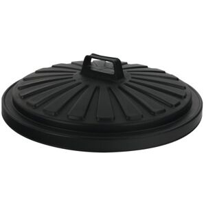 Plastic bin lid (470mm diameter). Combine with Round Dustbin Base (510893) for complete bin. Grooves to secure lid with metal clips on base. Made from sturdy plastic for secure waste disposal. Wipe-clean hygienic surface. Colour: Black.