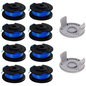 Ryobi Trimmer Line Spool: Ryobi One+ AC14RL3A 18V, 24V, 40V Trimmer Line, 11ft/0.065" Diameter. Premium Quality: The replacement trimmer line spool is made of high-quality ABS. It won't break easily, ensuring quick cutting and longer life. Convenience and High Efficiency: Flexible and durable cutting line. By allowing the line to stretch and cushion the impact on hard surfaces, the streamlined shape allows for less resistance for more efficient cutting. Replacement Spool with Automatic Feed System: Compatible with Ryobi trimmer lines, it uses centrifugal force to feed the trimmer line as needed. If you want the automatic feed to work better, the suggested solution is to apply powder to the spools, which provides a small amount of lubrication. Package Includes: 6 packs of replacement trimmer line spools and 2 packs of replacement caps are packaged in one package. The spool is 3.3 meters long and has a diameter of 0.165 mm, and the cap is compatible with the replacement spool.