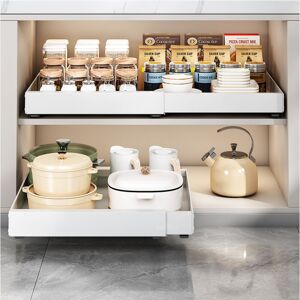 This versatile organizer rack is designed to enhance organization and maximize space efficiency in the homes. With its spacious design and easy-to-pull mechanism, you can store and access all your kitchen essentials with ease. Durable construction ensures it will last for years, making it an ideal solution for areas with limited spaces. Organize your kitchen pantry or large bathroom cabinet with this pull-out drawer rack. With its expandable space for holding various items inside, you can keep everything neatly arranged. The pull-out feature allows you to access even the furthest items with ease, no more digging around in the back of cabinets hunting for things. Specifications: Style: Modern Shape: Rectangle Type: Pull Out Cabinet Model: Storage Drawer Mounting: Self-Adhesive Used for: Kitchen Spices, Dishes, Bathroom Supplies Materials:Carbon Steel Color: White; Black Net Weight: 2.6kg/ 5.73 lbs Bearing Capacity: total 15kg/ 33.07 lbs Product Dimension: L * W * H 42.3x54x7cm/