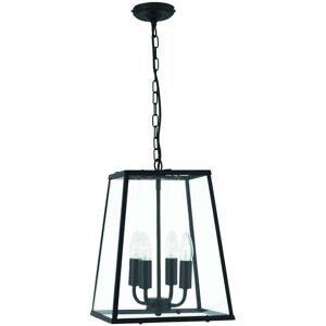 Specification Searchlight Lanterns - 4 Light Ceiling Lantern Pendant Matt Black, Glass Panels, E14 Finish: Black IP Rating: IP20 Height (cm): 88 Width (cm): 29 No. of Lights: 4 Lamp Type: E14 Dimmable: Yes Wattage (max): 40 Weight (kg): 3.5 Class: 1 (Earthed) Bulb Included: No Description This is a large collection which offers a choice of different fittings, all based around a lantern style. The fittings are perfect for allowing light to shine around the room, due to their clear glass panes set within the black frames. The traditional design with candle lamp holders gives the fitting a special feel. This tapered four light fitting is available in other shapes and sizes.