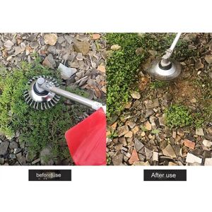 [Indestructible Trimmer Head]The wire brush is mainly used for deburring, dust removal, polishing and polishing accessories, which can improve the coating quality of metal stone [Good Durability]This rotary wire trimming is made of high-quality carbon steel wire to durability [High Quality Material]Made of steel wire material, for long-term use. The advantage of carbon wire weeder attachments over traditional is that the wire is more flexible when trimming [Safe and Consistent]The internal fixed plate structure ensures consistency and safety [Easy To Use]Just need to connect weed brush to the shaft punch of the mower, it can be quickly and easily assembled and disassembled.Can help you meet the needs of mowing Colour:As Shown Material:Metal Size:6 inch Package Contents: 1x lawn mower wire wheel 4x installation accessories Only the above package content, other products are not included. Note: Light reflection and different displays may cause the color of the item in the picture a