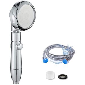 [ONE KEY STOP WATER]: Our handheld shower head has an on-off switch, just gently the button with your thumb and you can control the switch of your water flow. Make your operation easier especially for adult, disabled, toddler, baby, , pet, puppy. Also, this prevents unnecessary water waste in the shower. [3 MODES]: : Quick rinse, more efficient bathing, saving your time. Massage: Fine and even water sprinkles on your smooth skin feels gentle and comfortable, let you and your family enjoy a natural spa , relieving the fatigue after work. Rainfall: Pets and children are more sensitive to water, rainfall water column 't make your baby uncomfortable. It can be adjusted according to different needs. [HIGH-PRESSURE DESIGN]: Our shower heads designed with microtechnology. Guarantees optimal performance even in low water pressure installations. Dense small holes designed make water out strongly, softly and delicately, up to 30% water saving than showerhead. Remove the shower head, the strong