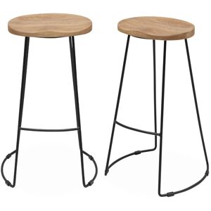Product advantages Seat in solid carved mango wood Black steel legs Footrest This set of 2 stools will bring modernity and elegance to your living space. It is a perfect combination of wood and black steel. It will look great in many interiors. The seat is made of solid mango wood and is carved to fit the body and improve the comfort of the seat. The base is thin and minimalist for even more elegance. These stools will look great next to a high table, a bar or a central island. They will accompany you in your moments of relaxation with family or friends. 2x stool: L47 x D40 x H75cm (5.3kg) Seat: L37.5 x D27.5cm Seat thickness: 2cm Height from seat to footrest: 45cm Seat height: 75cm Maximum weight supported: 110kg