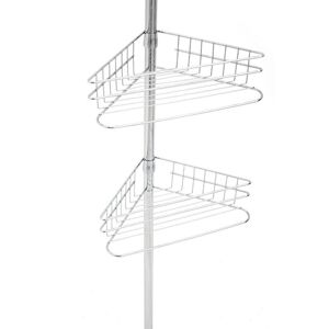 Description The four-layer corner shower shelf is the solution to efficient use of space, it can be set in the corner perfectly and 4 tiers of metal shower baskets can hold almost all bathroom accessories. Do not need to drill during installation, easily assemble a convenient and practical shelf. This shower shelf is made of sturdy metal, waterproof and durable, and the load-bearing capacity of each basket is up to 2kg, which is perfect for daily use. Features *Made from sturdy and durable metal material *Industrialized style design *Efficient use of space *Easy to install Specification Material: Metal Color: Silver Height: 250cm Package Included 1 x Storage Rack