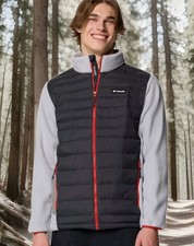 Columbia Men´s Juniper Peak™ Hybrid Down Jacket.Lightweight and comfortable, this Columbia men´s hybrid jacket is packed with 590 TurboDown™ Insulation in the body to keep you warm to the core.The lightly insulated arms, with 85% recycled polyester, are flexible to allow you to move freely out on the trails.The Omni-Shield™ water and stain repellent finish is designed to protect you from rain showers and damp days whilst the adjustable drawcord hem helps seal out the weather.590 TurboDown™ Insulation.Omni-Shield™ advanced repellency.Made with recycled content.Binding at hem and cuff.Zippered hand pockets.Drawcord adjustable hem.Centre Front Zipper.Composition:100% Nylon, 100% Recycled Polyester, 40g Microtemp XF II 85% Recycled Polyester/ 15% Polyester, 550 Fill Power Down Insulation, RDS Certified.Washing Cares:If present Close Hook and Loop Fastener, Machine Wash Cold Permanent Press, Powdered Detergent, Rinse Thoroughly, Wash Separately, Do Not Bleach, Tumble Dry Permanent Press Low, Iron Low, Do Not Use Fabric Softener, If Present Do Not Iron Decal, Do Not Dryclean.