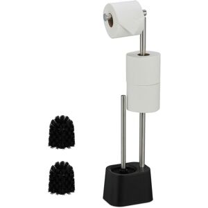 With this foldable toilet roll holder, you always have toilet paper and a toilet brush within easy reach. Whether in the bathroom or guest WC, the free-standing WC butler can be placed flexibly and does not need to be fixed to the wall. The decorative design of the toilet stand in elegant stainless steel fits into any bathroom. The replaceable brush head and 2 spare brush heads ensure the necessary hygiene. Toilet set in detail - Size H x W x D: approx. 65.5 x 13 x 16 cm - Weight: approx. 1.2 kg - Material: stainless steel, plastic - Various colours Detailed dimensions of the toilet set - Length of toilet brush: approx. 36 cm - Brush head H x D: approx. 9 x 8 cm - Internal thread D: approx. 1.1 cm - Toilet roll holder width: approx. 13 cm - Spare roll holder H: approx. 31 cm standing toilet roll holder with toilet brush - Practical combination of toilet roll and toilet brush holder - Bendable design - Replacement roll holder with space for 2 rolls - Hygienically replaceable brush head