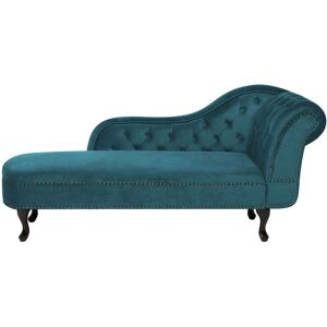 Chesterfield Living Room Chaise. The marvellous chaise lounge is an elegant piece to add to your interior, especially suitable for living rooms and halls. Upholstered with velvet, it is sturdy and pleasant to touch. The chaise lounge is additionally embellished with tufted buttons and nailhead trim. A combination of engineered wood and hardwood make the frame and legs exceptionally durable, warranting great stability and longevity. Details: Product Type: Chaise Lounge Style: Glam General Color: Green, Brown Shade: Mint Green Material Type: Fabric Main Material: Velvet Additional Material: Larch Wood Filling Material: Foam Material Composition: 100% Polyester Arm Style: Recessed Orientation: Right Hand Pattern: Solid Reclining: No Seat Construction: Sinuous Springs Seat Foam Density: 35 kg/m3 Dimensions: Armrests Height: 24 cm Depth: 65 cm Seat Thickness: 20 cm Seat Height: 43 cm Width: 169 cm Height: 79 cm Seating Surface: 134x56 cm Weight: 30 kg Weight Capacity: 180 kg Weight