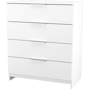 This wide 4 drawer chest of drawers is practical and stylish. Perfect for any home as a free standing storage unit. A Fresh modern range, with solid metal pull handles and comes in a range of scratch resistant matt finishes. All our furniture is made in the United Kingdom, to the highest quality. Latitude Run Colour: Black/White