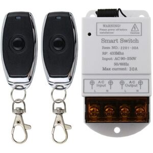 1. Jogging mode: Press the remote control without releasing to power on, release the remote control to disconnect 2. Self-locking mode: Press the remote control line to power on, and press the remote control again to disconnect ; 3. Interlock mode: Press one of the buttons on the remote control (such as A button), is powered on, and then press another button on the remote control (such as B button) to disconnect; 4. Jog delay off mode: press the remote control line to power on, release the remote control and start timing, after 5 seconds, 10 seconds, 15 seconds, 20 seconds (4 levels), will be automatically disconnected; 5. The function of turning on the light when the power comes in: That is, the whole circuit automatically pulls in after power supply, also known as the function of turning on the light when the power comes in. 1. Working voltage: AC 90-250V 50/60Hz; 2. Load current: ≤30A; 3. Standby current: 3.6mA~5mA; 4. RF frequency: 433MHz; 5. RF working mode: superheterodyne