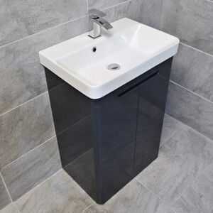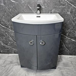Hydros Ross curved vanity unit range Available in 550mm or 700mm version With high quality ceramic basin Unlike other listings our units come ready assembled (not flat pack) Soft close doors Unit & basin manufactured in Europe High quality Anthracite gloss finish Built in moulded handles (see images) With internal shelf for creating extra bathroom storage space Unit made from MDF Finished using high quality materials by the paint manufacturers of Dulux Assembled using high quality German parts Please note: when both doors are completely open this adds 30mm to the overall size of the unit 550mm unit sizes: Width: 553mm Depth: 375mm Height: 835mm 700mm unit sizes: Width: 706mm Depth: 375mm Height: 835mm With an optional Amy tap & waste Tap option also includes click clack basin waste Single lever, curved spout waterfall style basin mono Chrome finish, manufactured from brass Tap option requires minimum 1 bar operating pressure