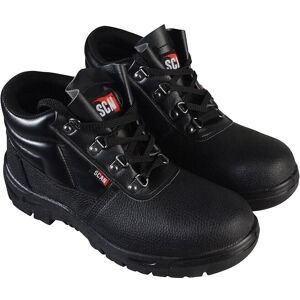 1 x Pair of Scan 4 D-Ring Chukka Safety Boots Black UK 4 EUR 37 The Scan Chukka Safety Boots have grained leather uppers offering excellent resistance against abrasion. With anti-static, energy absorbent polyurethane soles for comfort, strength and durability. The padded ankle collars provide additional comfort whilst the 200 Joule steel toecaps and midsole provide protection. The soles are resistant to oil, acid, alkaline, heat (180°C) and penetration. Conforms to EN ISO 20345 standard. Safety Rating: S1P. Slip Rating: SRC.