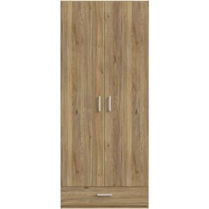 Maximize your storage space with this compact yet spacious 2-door wardrobe in mauvella oak. With a built-in mirror and a convenient drawer, this unit is perfect for smaller rooms or guest spaces, offering stylish and practical organization. 17 Stories