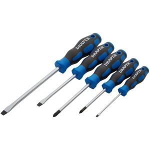 Description This is a 5-piece screwdriver set featuring high-quality chrome vanadium steel blades that are hardened and tempered for durability. The blades have a satin chrome plated finish and sandblasted tips for improved grip. The screwdrivers are equipped with soft grip handles with molded inserts, providing comfort and better control during use. Technical Specifications Blade material: Chrome vanadium steel Blade finish: Satin chrome plated Blade tips: Sandblasted Set contents: 3 flat-head screwdrivers: 3.2 x 75mm, 6.0 x 100mm, 8.0 x 150mm 2 Phillips screwdrivers: No.1 and No.2 Compatibility and Accessories Suitable for a variety of DIY and home improvement tasks involving flat-head and Phillips screws Installation No installation required; ready to use out of the box Usage Use the screwdrivers to tighten or loosen screws in various materials Ensure the correct size and type of screwdriver for the screw to prevent damage Other Information Designed for professional and DIY use,