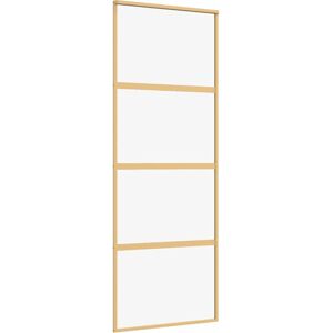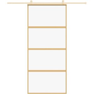 Create a graceful transition from one space to another with this sliding aluminium door. This door with slide design is a perfect solution for space-saving opening. This sliding door features 5 mm thick safety glass which is supported by 20 mm thick corrosion-free aluminium frame with powder coating, which is durable. Additionally, the glass panel is easy to clean and maintain. The door can only be mounted in combination with sliding door hardware kits. You can find the matching sliding door hardware kits in our shop (SKU: 145263), which need to be purchased separately. For the installation way, you can check our installation manual of the door and sliding hardware kits. Material: Aluminium, ESG glass Surface treatment: Power-coated Door thickness: 20 mm Glass thickness: 5 mm Anti-rust Mounting accessories are included Hanging wheels and top sliding rails are excluded Assembly required: Yes Delivery includes: 1 x Door 1 x Door stopper Symple Stuff Door Size: 205cm H x 102.5cm W x 4 cm D, Finish: Gold
