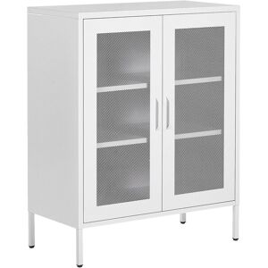 Home Office Highboard Cabinet with Shelves. Add an industrial motif to your room with this sideboard. Made out of steel, the piece doesn't require maintenance often, while also being durable and long-lasting. It features 3 shelves, on which you can place clothes, documents and other various things. Due to grates placed on the doors, the inside of the sideboard is visible, thanks to which it can be also a place to display your souvenirs or other decorative pieces. Details: Product Type: Sideboard Style: Modern General Color: White Material Type: Metal Main Material: Steel Legs material: Metal Shelves number: 3 Doors Opening: Standard Drawers: No Finish: E-Coating Key Locked: No Number of Doors: 2 Shelves: Yes Dimensions: Depth: 40 cm Width: 80 cm Height: 102 cm Weight: 22 kg Top Weight Capacity: 50 kg Offer Includes: 1 x Sideboard Key Features: Can Serve as a Room Divider, Adjustable Shelves, Timeless Design, Exceptionally Easy Care, Leg Caps for Surface Protection, Additional Storage