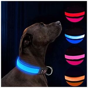 【Night Security】: The lightweight collar is super bright for night hikes and makes your dog clearly visible and glows in the dark. find in the dark, highly visible to other walkers, joggers, cyclists, motorists, etc. 【Perfect for any dog】: The length of our necklace is 40 cm. Generous length to adapt to any size. many dog sizes, it can be adjustable to any size. any length to fit; your pet. 【3 light mode settings】easy adjustment by pressing the button and change the lighting modes freely: fast flashing, slow flashing or constant lighting. 【USB charging】: This LED collar for dogs is delivered with smart USB rechargeable technology and lithium-ion battery, providing long battery life. The USB rechargeable battery provides 5 hours of illumination per hour of charge.