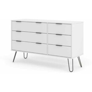 Our wide industrial look chest offers 3 wide and 3 narrow drawers in an hardwearing, easy to clean crisp white textured melamine finish with plastic pull handles and metal feet. Features : Textured White finish easy to clean, hardwearing finish real metal legs easy glide drawers industrial style Dimensions: Width: 119.3cm Depth: 39.5cm Height: 73.6cm . Our wide industrial look chest offers 3 wide and 3 narrow drawers in an hardwearing, easy to clean crisp white textured melamine finish with plastic pull handles and metal feet. . Delivery is free to UK Mainland excluding the following postcodes which will incur a surchage, please check before ordering for these postcodes:- AB30-39, AB41-45, AB51-56, E1-98, EC1-88, FK17-21, G83,84, G90,HS1-9,IV,KA27-28,KW1-17,N1-22,N81,NW1-11,PA20-88,PH15-50,SE1-99,SW1-19,W1-14,WC1-99. 5#7