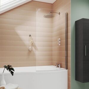 Features and Benefits: Stylish curved B-shaped bath screen with fixed safety rail Comes with polished chrome profile Reversible installation, Can be installed on left or right handed baths This screen is made of 6mm toughened safety glass Suitable for use with B shaped shower baths Easy to install and clean Highly durable, clear finish glass Swing in Dim 780mm, Swing out Dim 780mm Utilize space in your bathroom and create a showering space within your bath During installation extra care must be taken to avoid damaging the fittings Guarantee : 5 Year (12 months on serviceable moving parts from the date of purchase), please see manufacturer guarantee policy for more information Bath Screen Type Hinged Bath Screen Design Curved Bath Screen Height 1433mm Bath Screen Width 850mm Adjustment Range 838-858mm Swing Radius 1099mm Glass Thickness 6mm Glass Style Clear Frame Finish Polished Chrome Handed Reversible CE Approved? Yes Material Glass Colour Clear Brand Nuie Style Modern Market